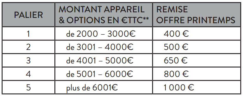 La remise est appliquée selon des paliers de prix définis par l’opération.