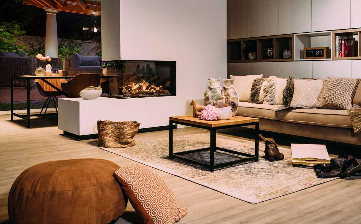 Une atmosphère agréable et saine : la vapeur d’eau produite par votre cheminée électrique e-Matrix contribue à un taux d’humidité sain dans la maison. Et comme la vitre d’un foyer e-Matrix n’est pas chaude, on peut la frôler sans danger.