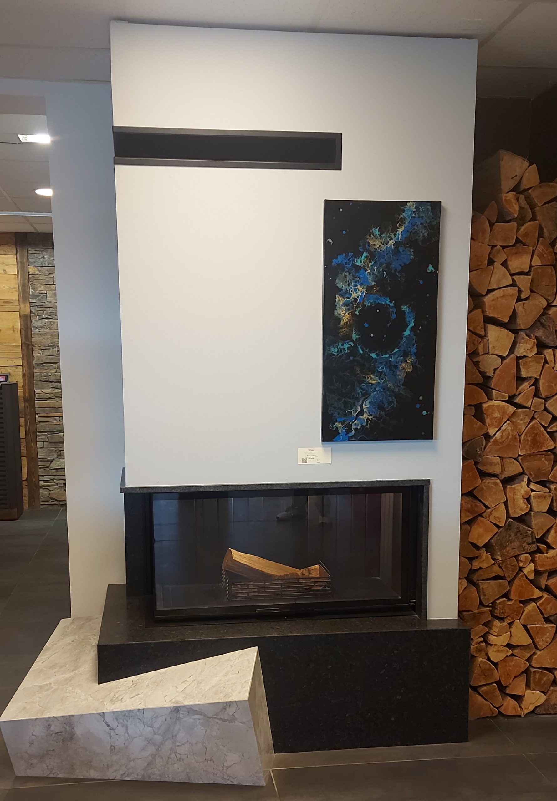 Cette mise en scène crée une expérience sensorielle où l’art du feu et la poésie des couleurs se mettent mutuellement en valeur. Chaque cheminée devient un écrin pour les créations de l’artiste, tandis que ses œuvres révèlent la beauté intemporelle de la pierre.